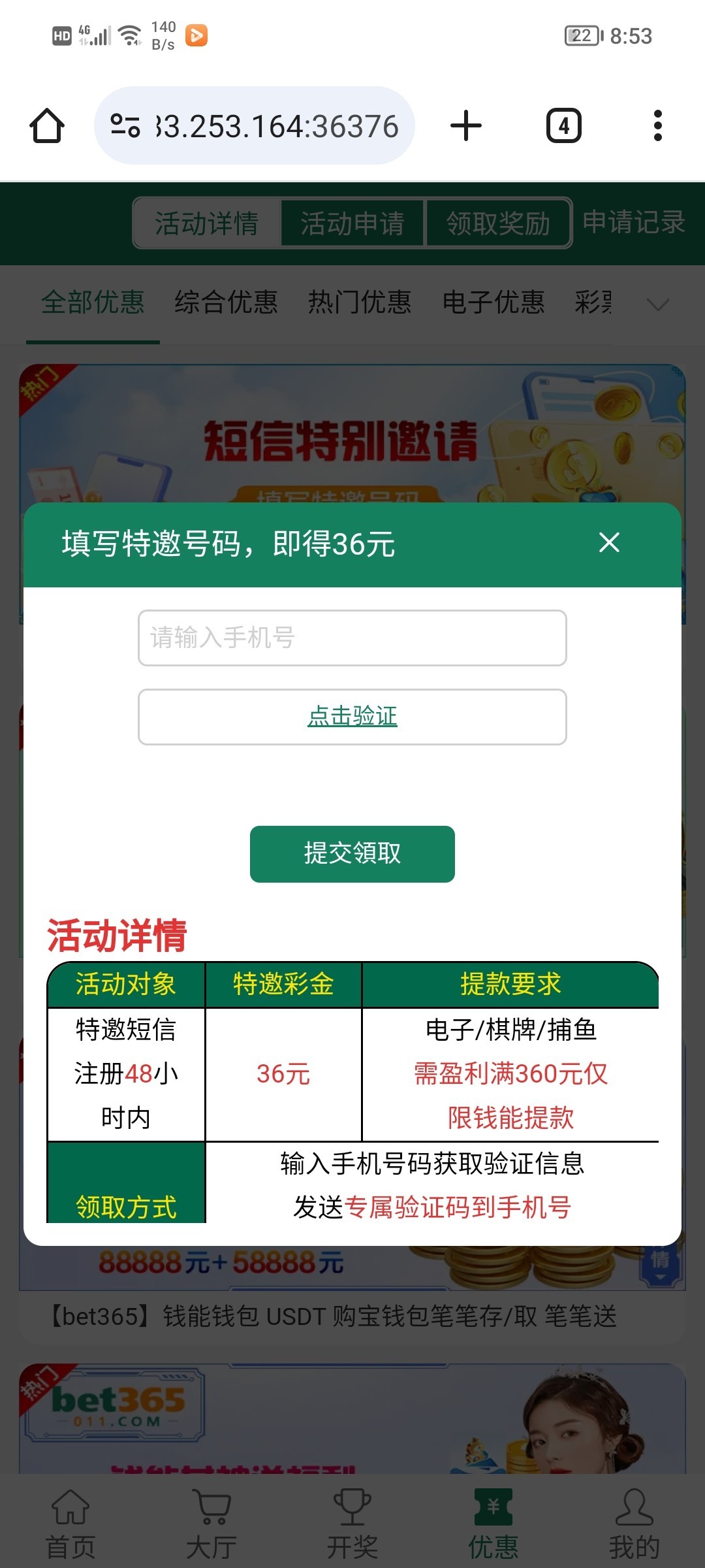 注册账号绑卡,优惠中心输入手机号自助申请特邀彩金38 出款满380,出款自测!