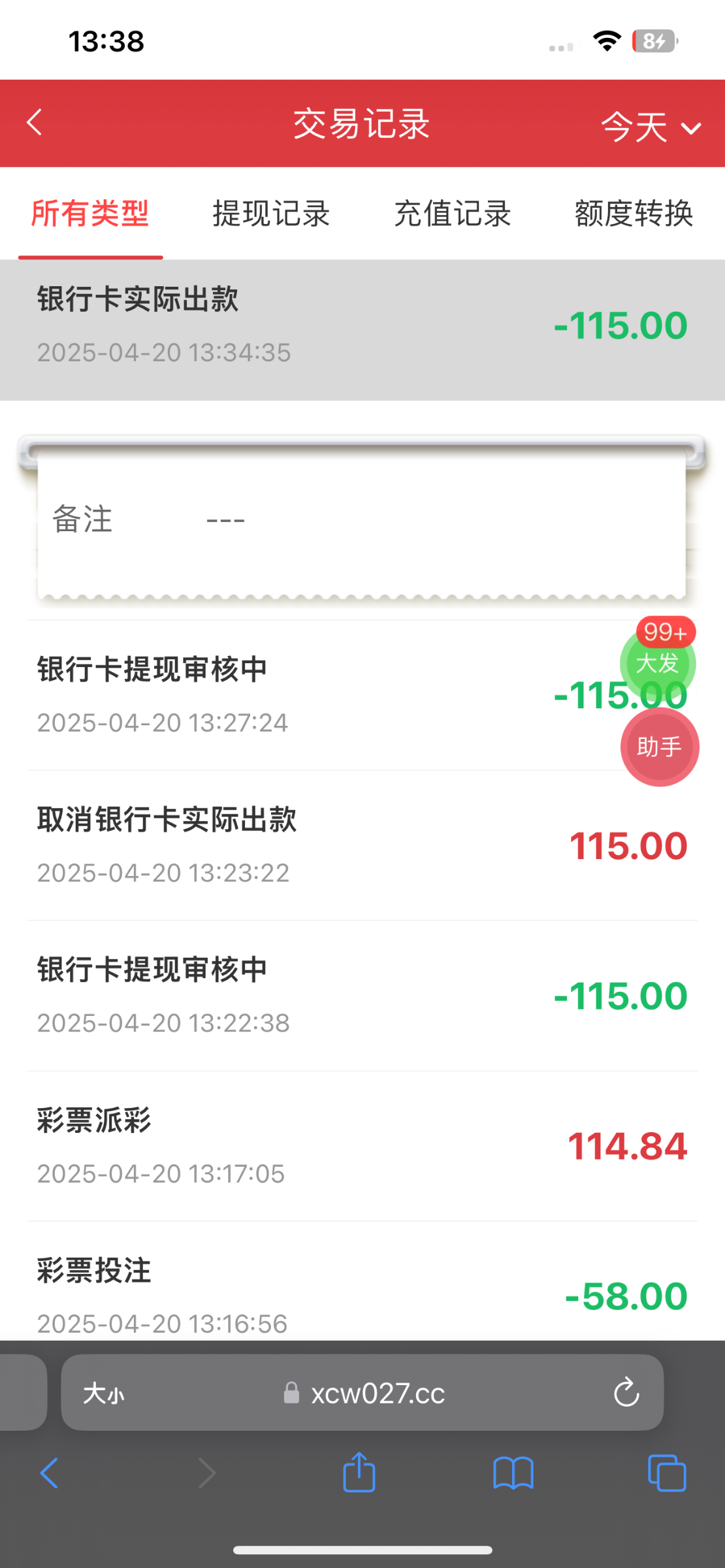 出款情况:自测(