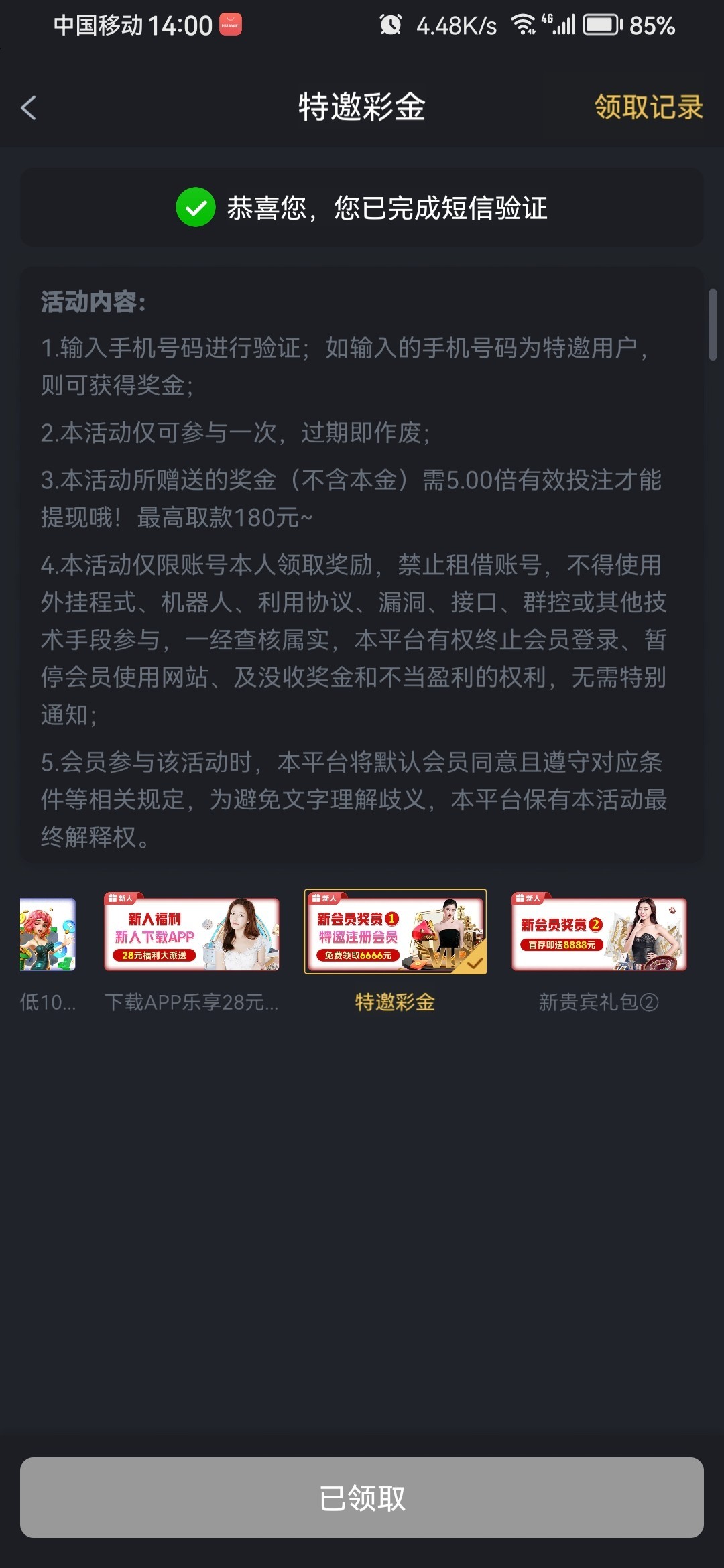 活动短信自助领取, 5668.com