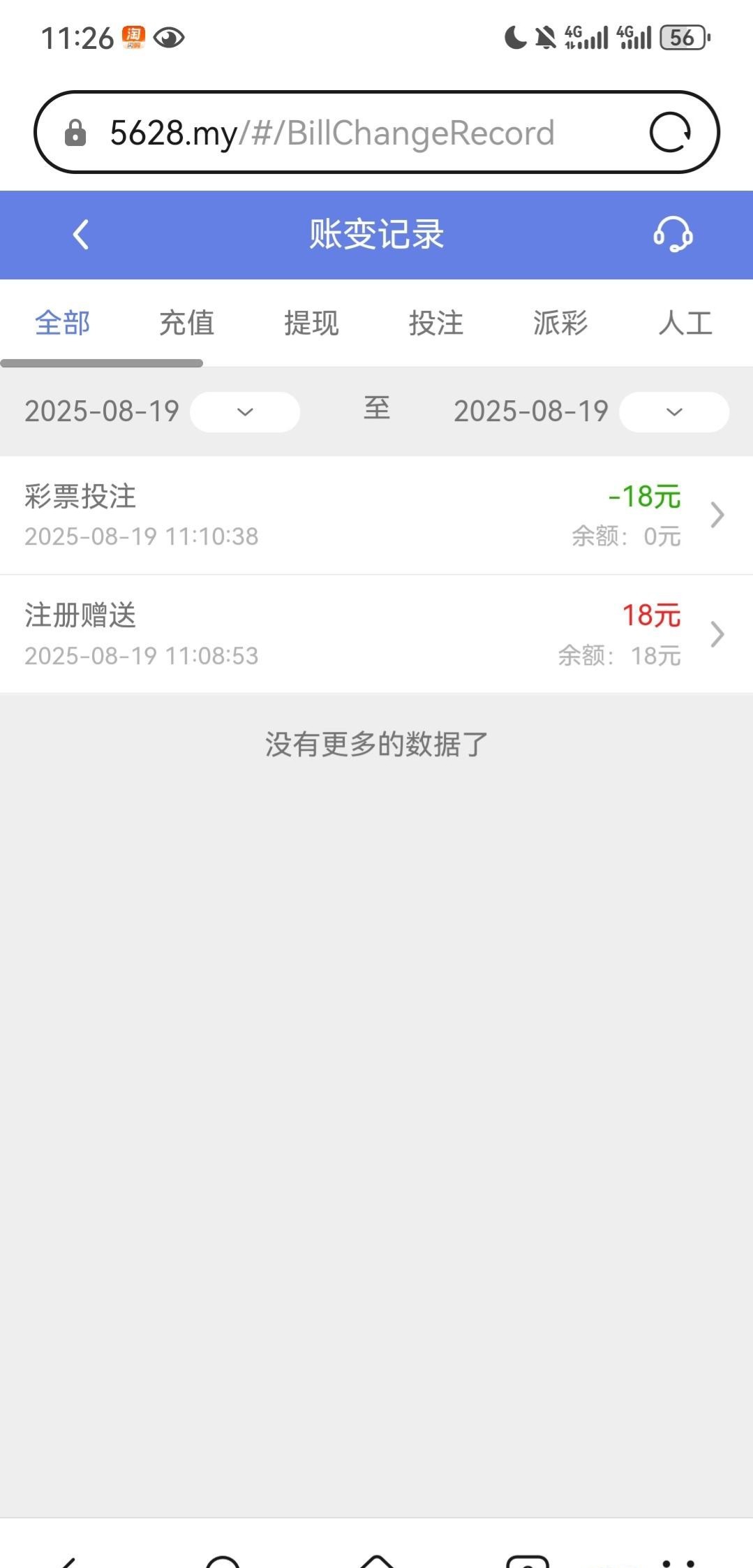 刚注册2个号直接秒到18,不限制游戏,建议老哥用玩过彩票台的手机号注册,网址 5628.my