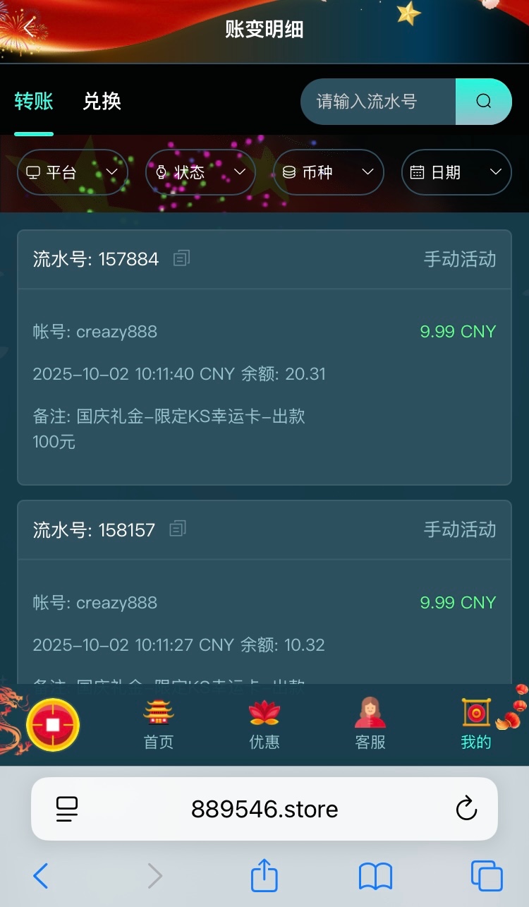 【幻影娱乐】9.99国庆礼金