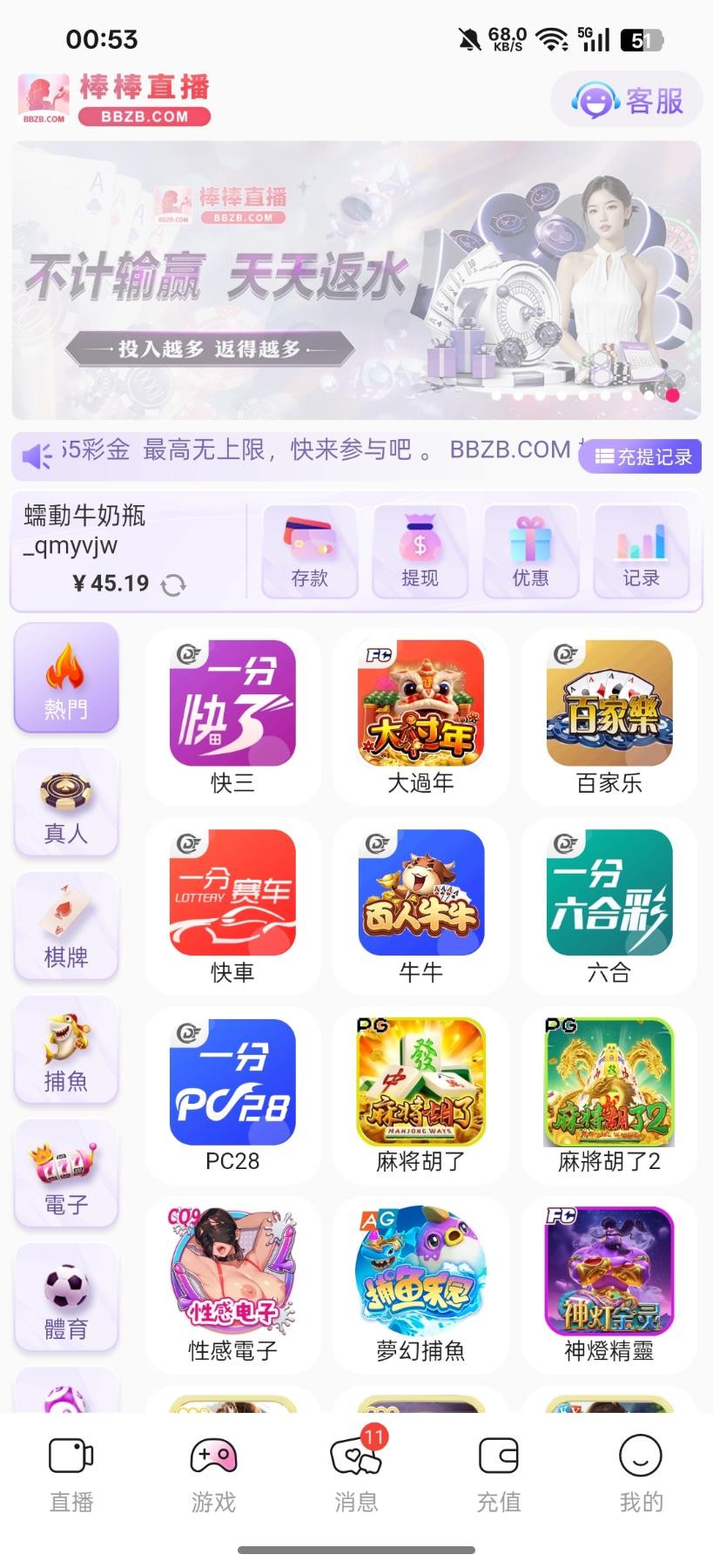 【棒棒直播】—✅— 回访彩金